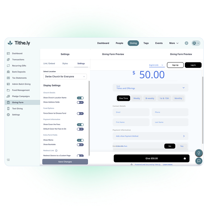 - Pledge and Recurring Giving