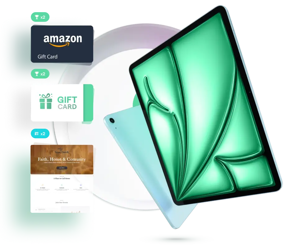 *To be eligible for prizes, registrant must complete the entry form above. Registrants must be an existing customer of Tithely or start a Tithley All Access trial between February 19th, 2026 and March 27th, 2026. This giveaway is not sponsored, endorsed, administered by, or associated with Amazon.com, Inc., Apple, Inc or their affiliates.
